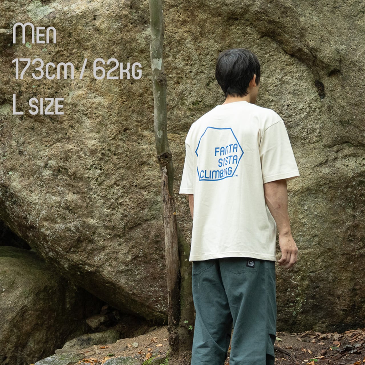 全体的にゆとりをもたせています。トレンド感あるシルエットバランスで、クライミングはもちろん普段着にもお勧めです。